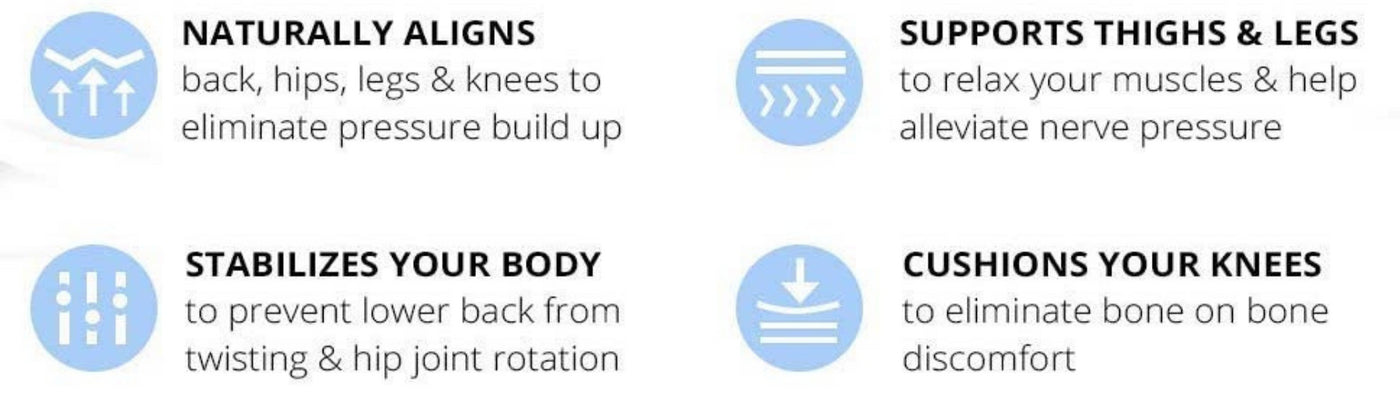 Alleviate unwanted pressure and discomfort by properly supporting your body to align your back, hips, legs & knees.
